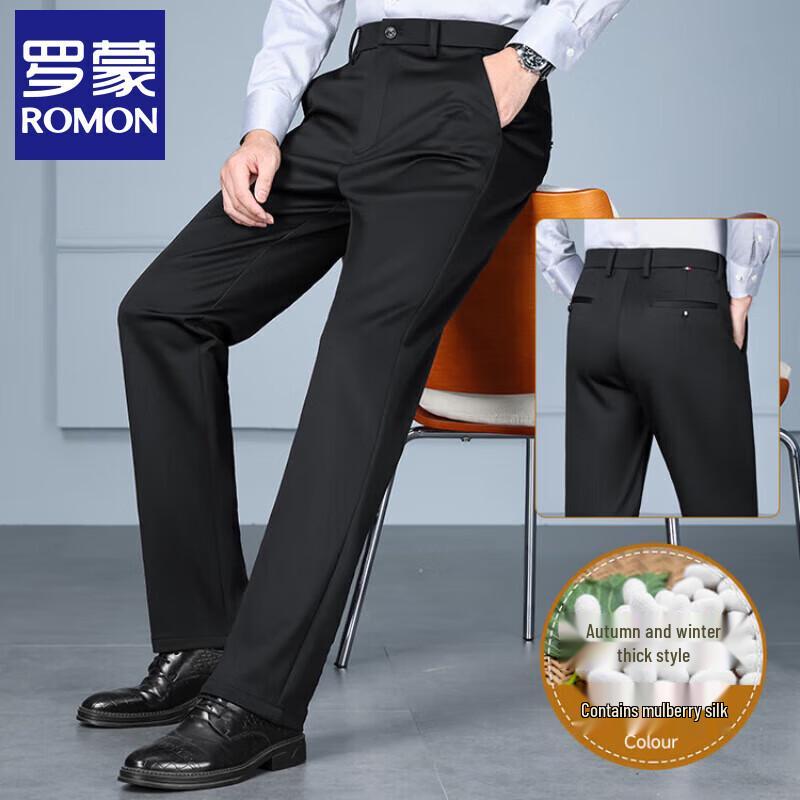 ROMON Men's Mulberry Silk Blend Business Casual Trousers