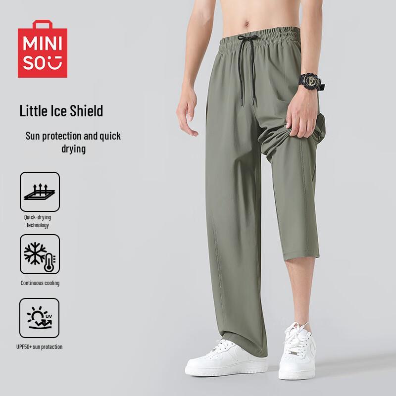 Experience comfort and style with MINISO Men's Quick-Dry Straight-Leg Casual Pants. Crafted from a thin, breathable, and highly elastic fabric blend of 87% polyamide fiber and 13% spandex, these loose-fit trousers are designed for rapid drying. Featuring a drawstring elastic waist and a straight-leg cut, they are perfect for summer daily wear, outdoor activities, and offer versatile comfort for young men.