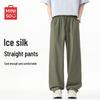 Experience ultimate comfort and style this summer with MINISO Men's Loose Fit Casual Pants. Crafted from a thin, breathable ice silk fabric, these curved-cut pants offer a relaxed straight-leg silhouette. Featuring a drawstring waist for an adjustable fit, they are perfect for daily wear or outdoor activities. Available in various colors and designs including mesh, side stripe, and ray patterns.