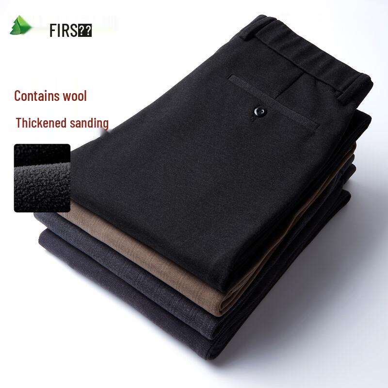 Shanshan Men's Wool Blend Flannel Straight Casual Pants