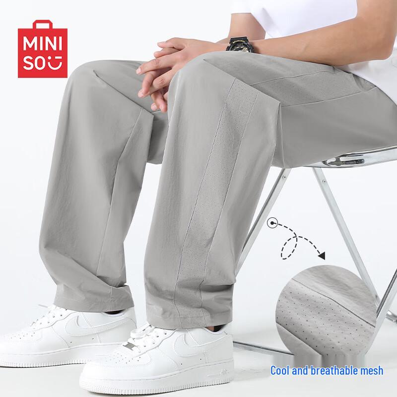 Stay cool and comfortable in these MINISO men's casual tapered pants. Designed for summer, they feature a lightweight, breathable mesh fabric for optimal airflow. The loose, versatile fit and drawstring waist ensure all-day comfort, perfect for daily wear or light sports. Made from 100% polyester with slight elasticity, these stylish pants are a must-have for your warm-weather wardrobe.