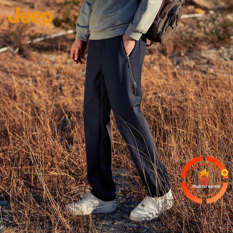 Experience comfort and versatility with JEEP Men's Autumn/Winter Outdoor Softshell Pants. Designed for both casual wear and outdoor activities like hiking, these pants feature a loose, straight-leg fit and a comfortable elastic waistband. Made from a durable, slightly elastic polyester-spandex blend, they offer breathability and easy care with a non-iron finish. Perfect for the active man seeking style and function in cooler weather.