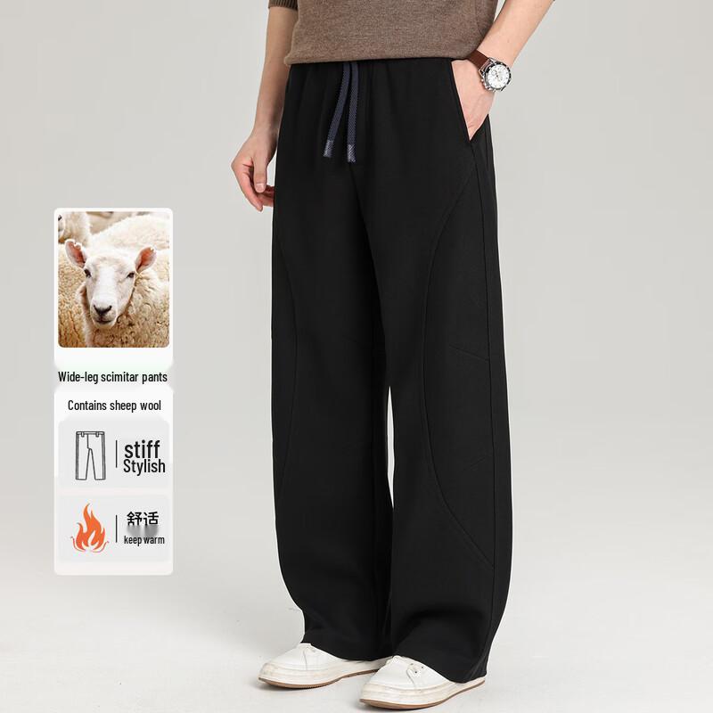 Firstview Men's Wool Blend Relaxed Wide-Leg Casual Pants