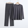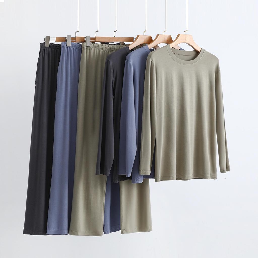 Pánský nadměrný modální pyžamový set - Dlouhý rukáv, Dlouhé kalhoty, s kapsami, Ležérní volný dvoudílný domácí oděv.