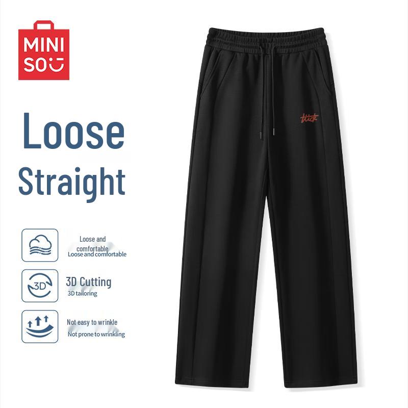Discover comfort and style with MINISO Men's Relaxed Fit Straight-Leg Sweatpants. Designed for youth and teenagers, these casual trousers feature a cleanfit straight-leg silhouette, offering a relaxed yet refined look. Made from a breathable blend of 65% cotton and 35% polyester with micro-elasticity, they ensure comfort for everyday wear or lounging at home. Perfect for spring and autumn, with a natural waist and a simple, letter-patterned design.