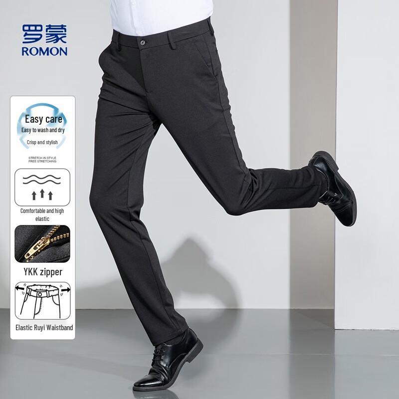 Romon Men's Four-Way Stretch Straight-Leg Business Casual Trousers