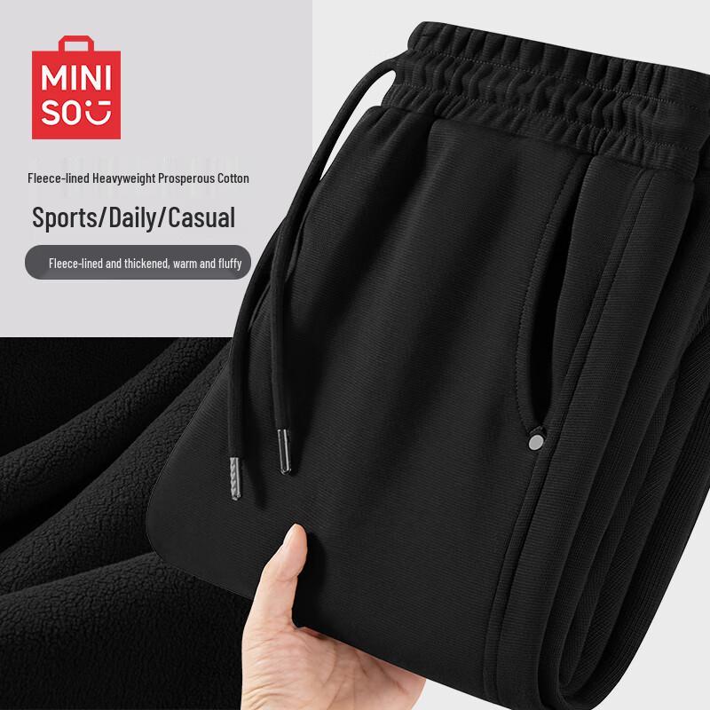 Stay warm and comfortable during autumn and winter with MINISO Men's Fleece-Lined Arc Trousers. These sporty yet casual wide-leg pants feature a relaxed, loose fit, natural waist, and straight leg opening. Made from a durable cotton-polyester blend, they offer slight elasticity, making them ideal for daily wear and outdoor activities.