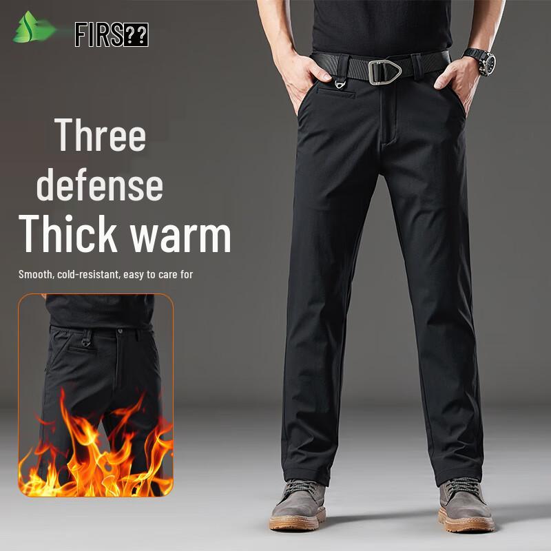 Experience ultimate comfort and style with FIRS Men's Autumn/Winter Straight Casual Pants. Crafted from a high-stretch nylon-spandex blend, these pants feature a "three-proof" (water, oil, stain-resistant) finish, ensuring durability and easy care. Available in both thickened and fleece-lined options for warmth, they offer a comfortable straight fit suitable for daily wear or outdoor activities. Designed for middle-aged and young men, these versatile trousers combine business casual elegance with everyday practicality.