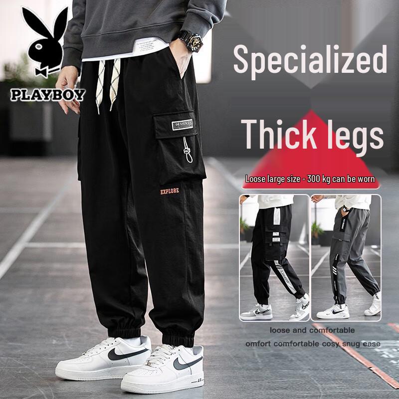 PLAYBOY Men's Casual Breathable Elastic Tapered Cargo Pants