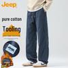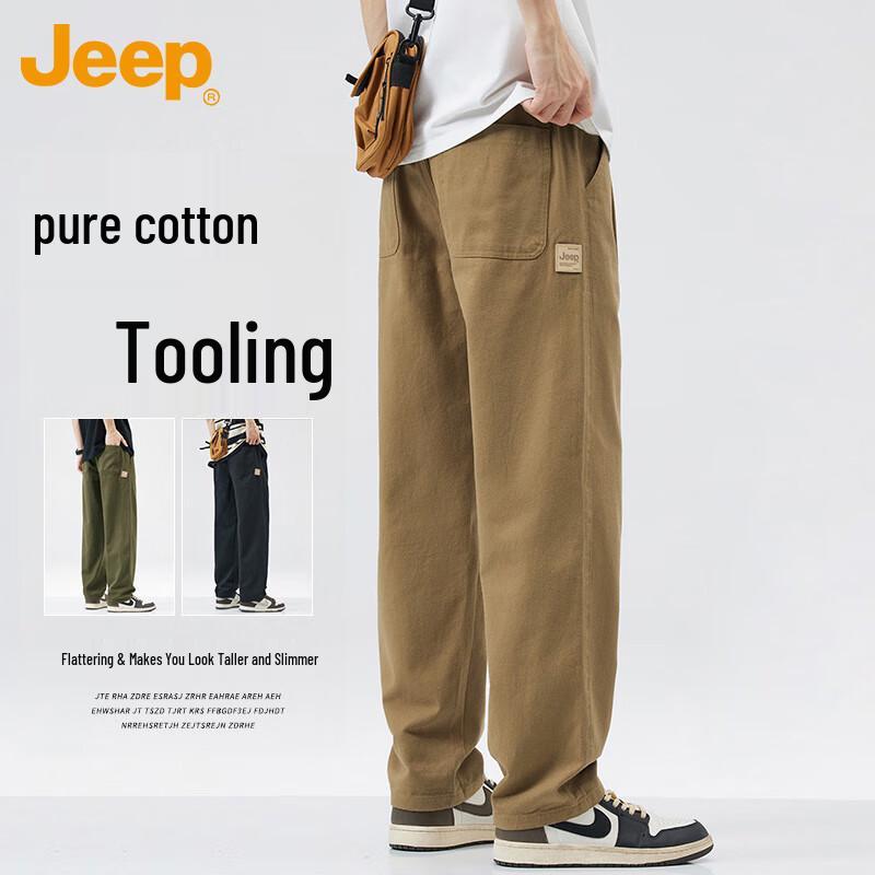 These Jeep Men's Pure Cotton Casual Cargo Pants are designed for comfort and style during autumn and winter. Made from 100% cotton with a slight stretch, they feature a straight-leg fit and a natural waist. Perfect for daily wear or outdoor activities, offering a versatile casual and minimalist look.