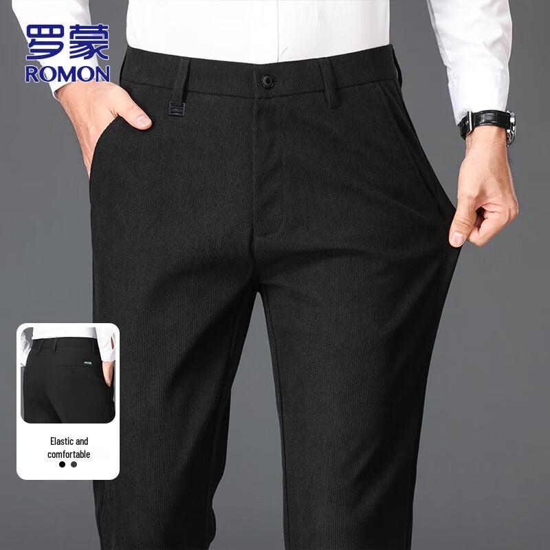ROMON Men's Business Casual Straight-Leg Suit Pants