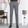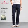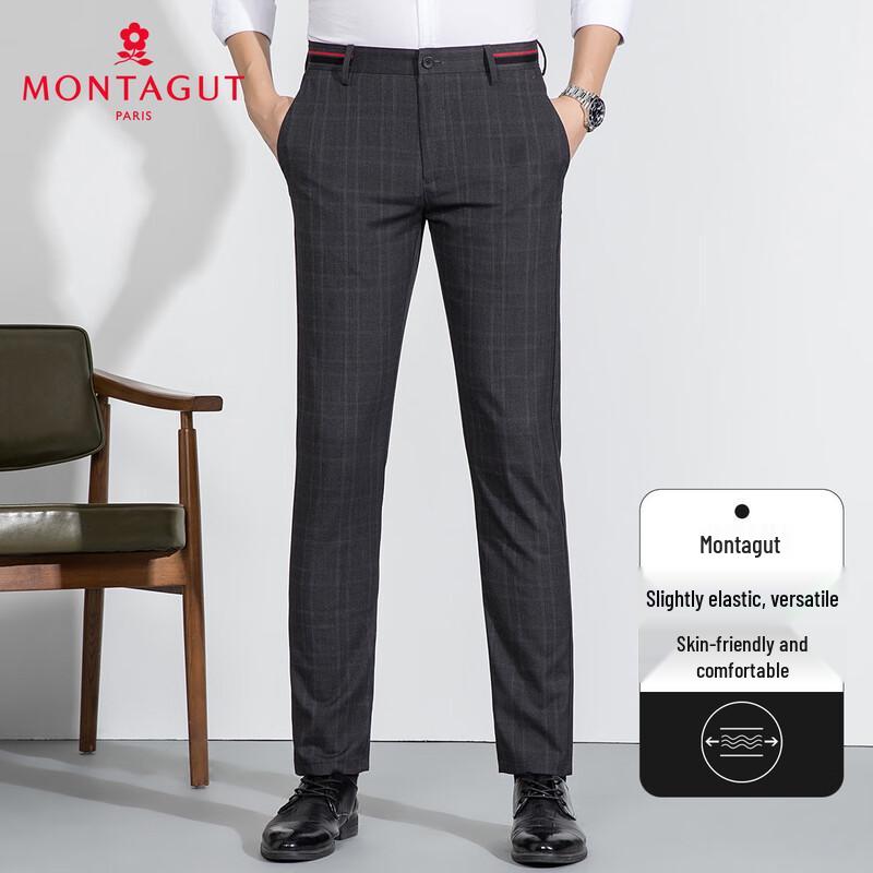 Experience refined comfort with MONTAGUT's Elegant Striped Casual Trousers. Crafted from a comfortable blend of polyester, viscose, and spandex with slight stretch, these straight-leg pants feature classic retro stripes and exquisite splicing webbing. Designed for versatility, they are perfect for both daily wear and workplace settings across all seasons, offering an easy-to-care-for and stylish option for youth and middle-aged individuals. Features a natural waist, long length, and zipper closure.