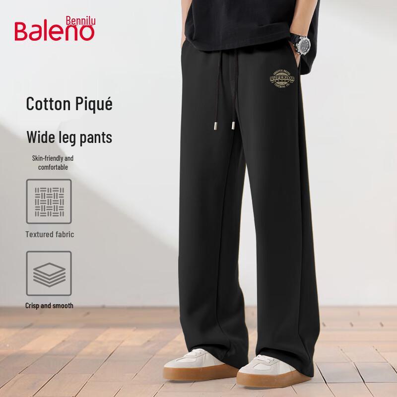 Baleno Men's Pique Cotton Wide Leg Straight Pants