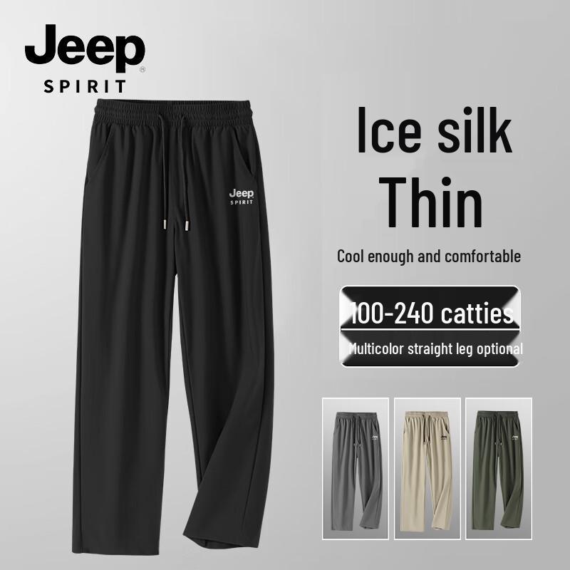 JEEP SPIRIT Men's Oversized Ice Silk Straight Leg Casual Pants