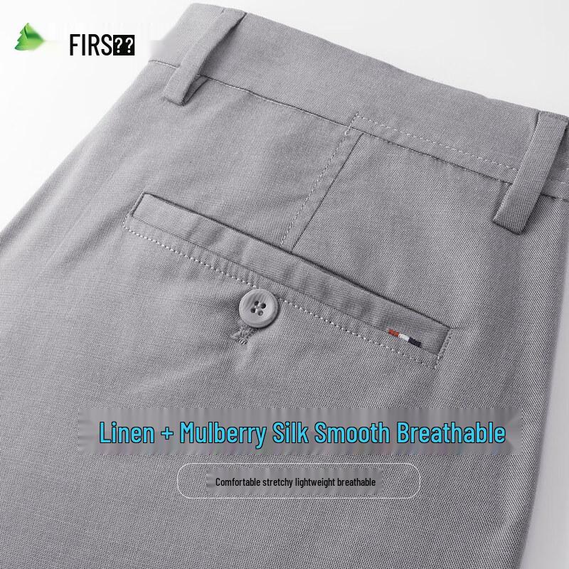 Experience ultimate comfort and style with Shanshan Men's Straight-Leg Casual Pants. Crafted from a premium blend of polyester, viscose, linen, mulberry silk, and spandex, these lightweight pants offer exceptional smoothness, breathability, and a skin-friendly feel. Designed for spring and summer, their comfortable straight-leg fit and subtle elasticity make them ideal for both daily wear and business casual settings. Featuring a classic solid color and a zipper fly, they embody a simple yet sophisticated commuting style, perfect for the modern man.