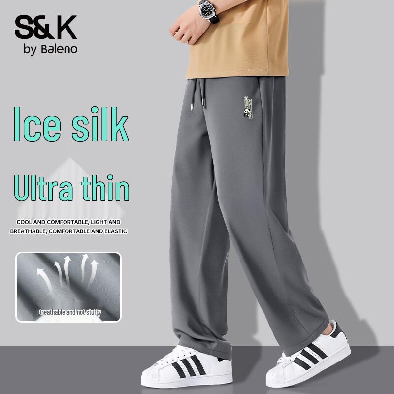 Experience ultimate comfort and style with Baleno Men's S&K Series casual pants. Crafted from a breathable ice silk blend (95.2% polyester, 4.8% spandex) for a cool and quick-drying feel, these loose-fit straight-leg trousers feature a trendy JPB Panda Green Bamboo print and a comfortable drawstring waist. Perfect for spring and summer, whether for daily wear or outdoor activities.