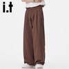 Discover the izzue it Men's American Retro Loose Straight Casual Trousers. Made from 100% polyester, these pure-color pants feature a comfortable natural waist, practical pockets, and a stylish loose, straight-leg fit. Designed for daily wear by youth and teenagers, they offer a non-elastic, regular thickness suitable for all seasons. Perfect for a casual and simple yet trendy look.