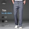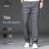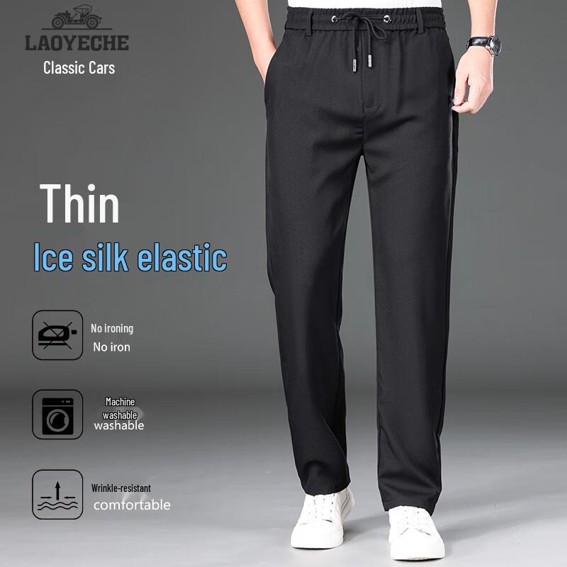 Laoyeche Pánské elastické ležérní kalhoty z ledového hedvábí s rovnými nohavicemi