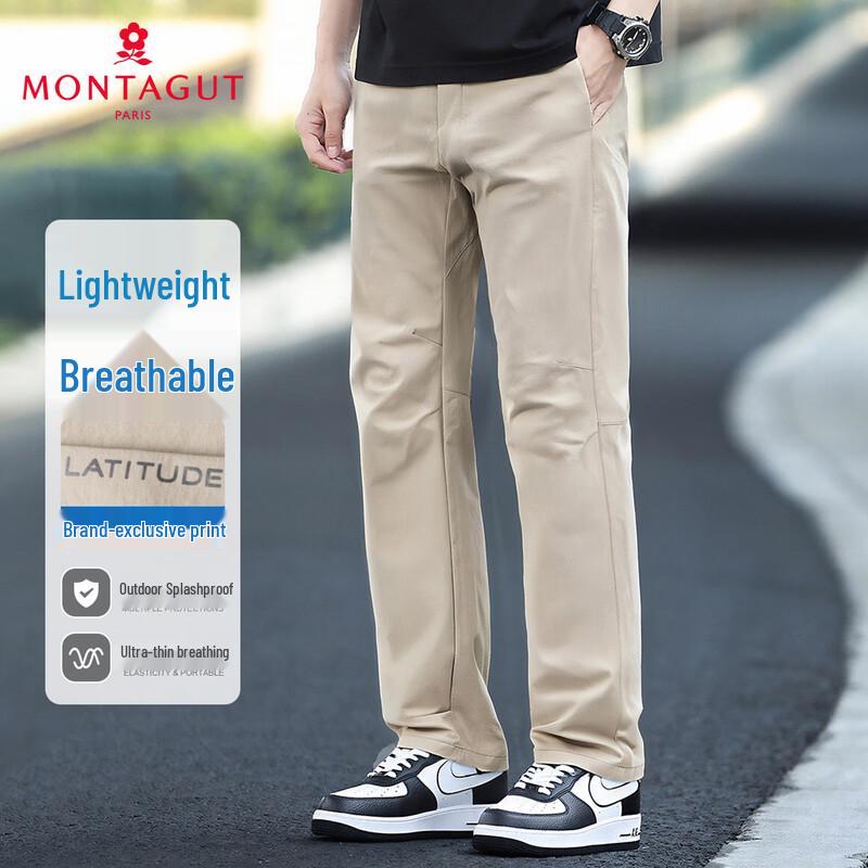Experience comfort and versatility with MONTAGUT Men's Lightweight Outdoor Straight-Leg Casual Pants. Designed for autumn and mild winter, these trousers feature a blend of 87.5% Nylon and 12.5% Spandex, offering micro-elasticity for ease of movement. Enjoy the benefits of lightweight, breathable fabric with a water-repellent finish, making them perfect for both daily wear and outdoor activities. The classic straight-leg fit and simple style provide a timeless look for young and middle-aged men.