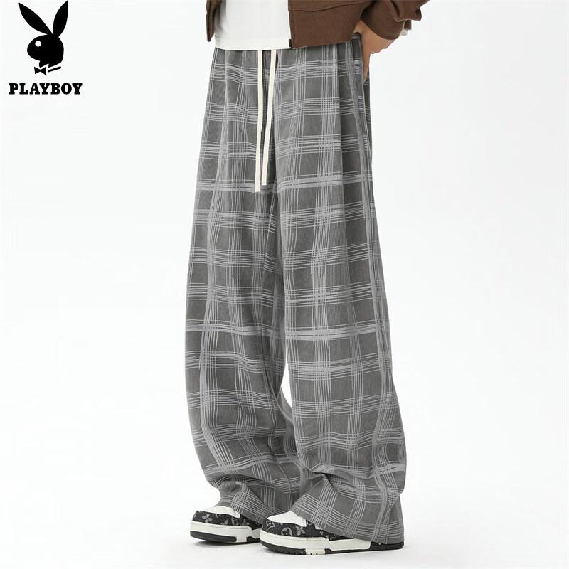 Playboy Men's Plaid Straight-Leg Drawstring Sweatpants