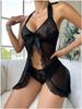 Multicolor Lace Bow Mesh Print Halter Neck Nightgown Lingerie Set