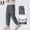 Men's Pleated Loose Cotton Cargo Ankle-Length Jogger Pants