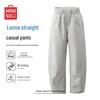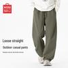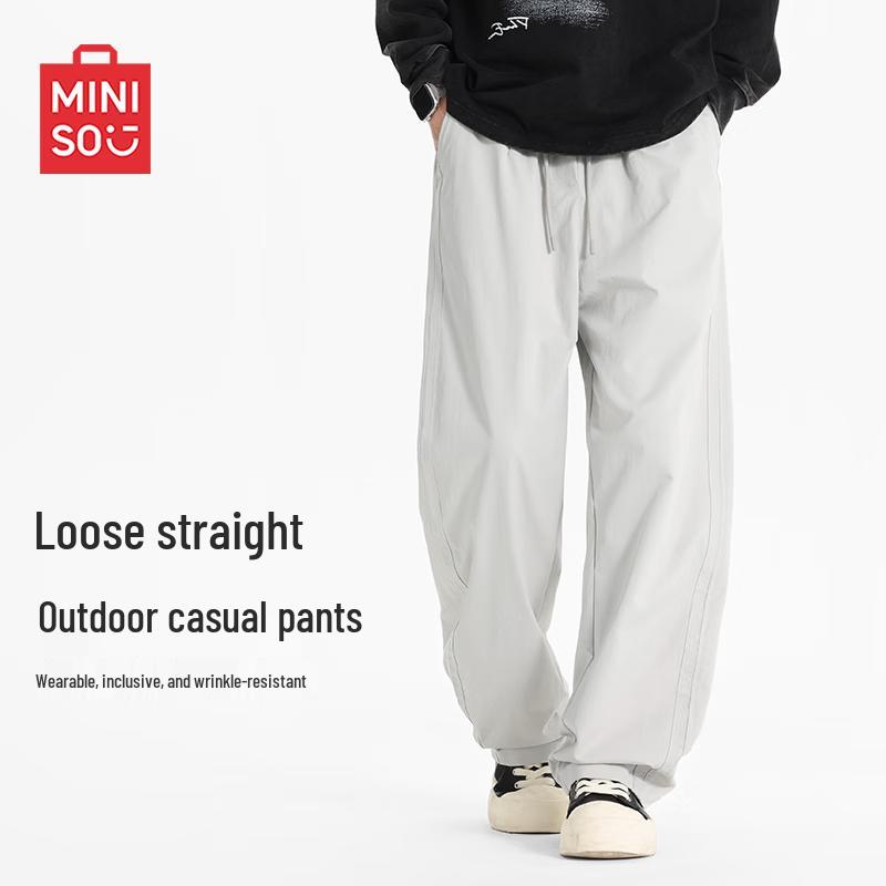 These MINISO Men's Retro Relaxed Straight-Leg Casual Pants feature a unique curved-cut design and an oversized silhouette, perfect for a comfortable yet stylish look. Made from 100% polyester with slight stretch and a breathable fabric, they are ideal for spring and autumn daily wear or outdoor activities. Designed with a natural waist and an elastic waistband for ease of wear, catering to youth and teenagers.