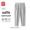 Discover comfort and style with MINISO Men's Heavyweight Waffle Tapered Casual Pants. Crafted from 100% polyester, these pants feature a loose fit, slight elasticity, and a breathable design, making them ideal for everyday wear or relaxing at home. The tapered silhouette and solid colors offer a slimming, versatile look suitable for various seasons and occasions, reflecting a Japanese/Korean casual style.