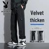 PLAYBOY Men's Fleece-lined Loose Straight-Leg Casual Pants