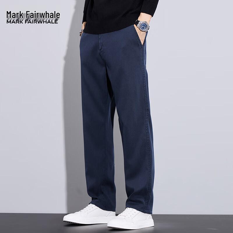Experience comfort and style with Mark Fairwhale Men's Casual Pants, crafted from a breathable Lyocell Tencel blend (61.3% Lyocell, 36.7% Polyester, 2% Spandex) for a soft feel and slight stretch. These versatile straight-leg trousers feature a classic solid color design, a natural waist, and a secure zipper closure, perfect for daily wear. Available in both regular (suitable for autumn) and fleece-lined (for winter warmth) options, ensuring comfort across seasons.