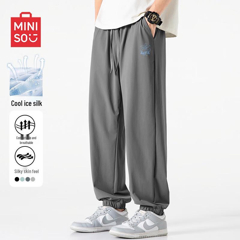 Stay cool and comfortable this summer with MINISO Men's Cooling Ice Silk Jogger Pants. Made from a thin, stretchy blend of 82% Nylon and 18% Spandex, these loose-fit casual pants offer excellent breathability and a cooling sensation. Featuring a trendy cuffed design and a subtle 'lucky coconut tree' print, they are perfect for sports, outdoor activities, or daily casual wear. Designed for youth, these relaxed pants blend simple style with modern trends.