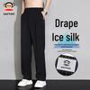 Stay cool and comfortable in these Paul Frank Men's Loose Straight-Leg Ice Silk Casual Pants. Crafted from 100% polyester with a thin, breathable ice silk fabric, these pants are perfect for summer and everyday wear. Featuring a natural waist with a drawstring closure, a relaxed loose fit, and a classic straight-leg design, they combine comfort with a trendy European and American style, often featuring cartoon animation elements.