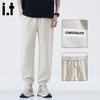CHOCOOLATE Men's loose fit tapered casual pants, featuring a trendy street style design. Made from a comfortable cotton-polyester blend (63.5% Cotton, 36.5% Polyester) with a regular thickness and no stretch. These nine-tenths length joggers come with a drawstring waist and tapered cuffs, suitable for daily wear or school. The design highlights a simple yet three-dimensional cut, perfect for autumn and winter, yet versatile enough for year-round comfort.
