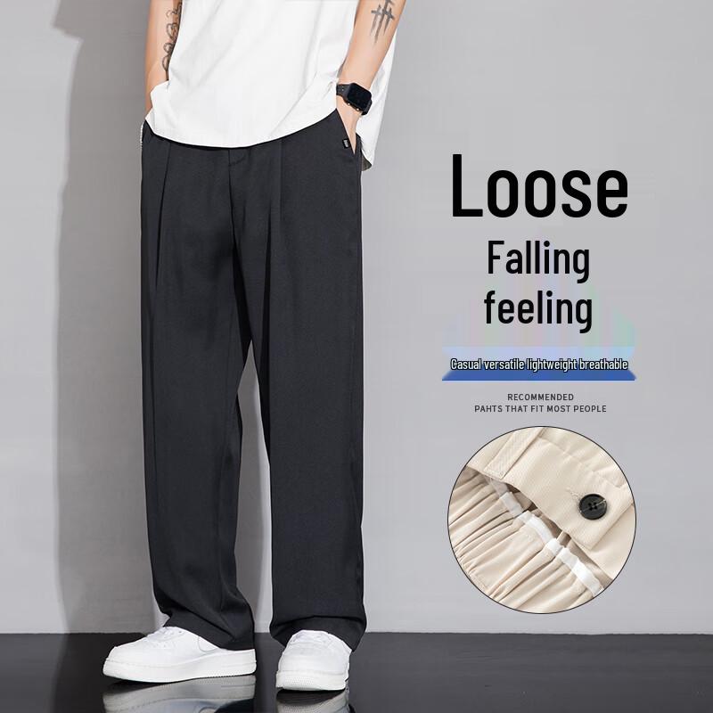 VUUG Men's Casual Drapey Wide-Leg Trousers