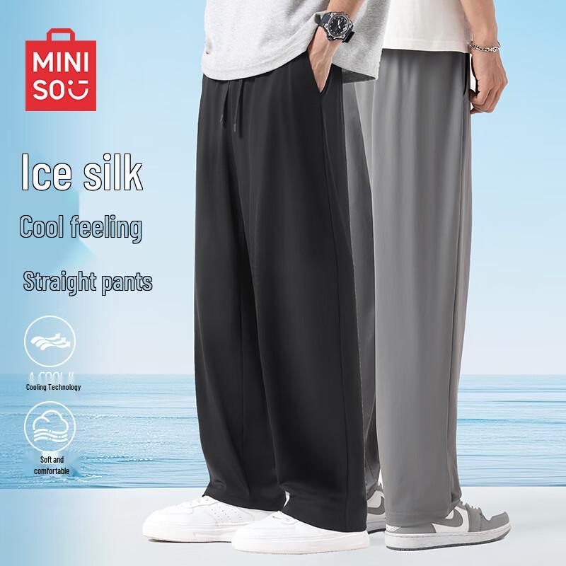 Experience ultimate summer comfort with MINISO Men's Cool Ice Silk Drape Straight-Leg Cropped Pants. Made from a breathable 82% Nylon and 18% Spandex blend, these thin, micro-elastic pants offer a refreshing cool feel and elegant drape. Featuring a relaxed fit, natural waist, and drawstring closure, they are perfect for casual daily wear or lounging at home. Ideal for youth and teenagers during the summer season.