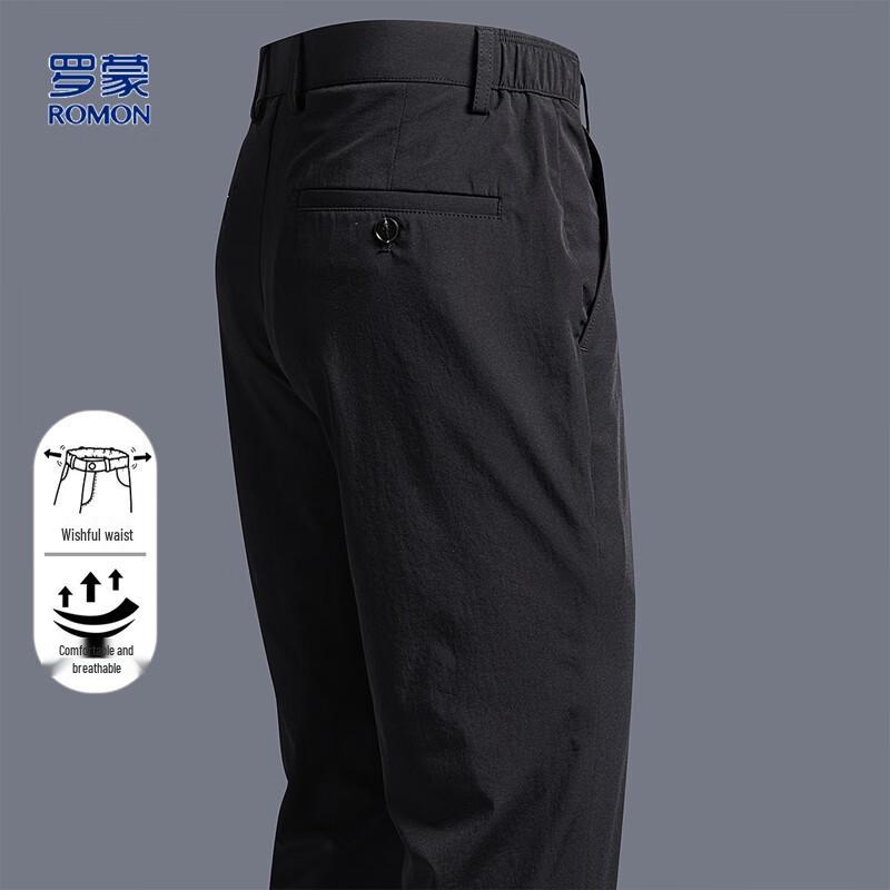 These Luomeng men's casual pants are designed for summer and spring, offering a blend of 88% Nylon and 12% Spandex for ice silk breathability and slight elasticity. Featuring a classic, easy-care, straight-fit design with a zipper fly and pockets, they are thin, comfortable, and perfect for daily wear or business casual settings for young and middle-aged men.