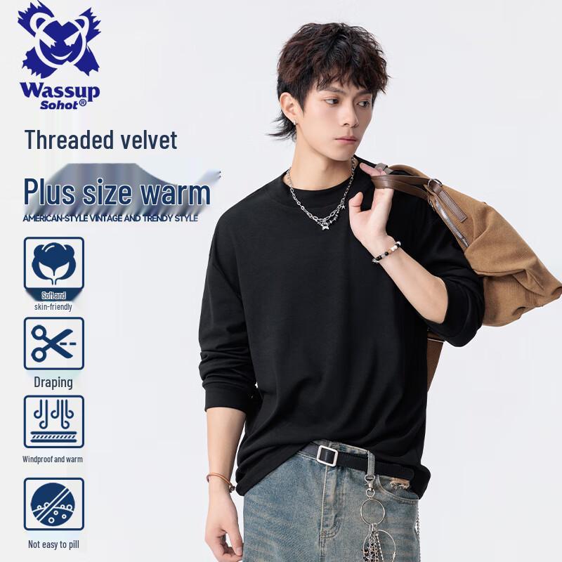 Wassup Sohot Men's Heavyweight Thermal Long-Sleeve Crew Neck T-Shirt