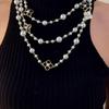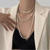Vícevrstvý perlový náhrdelník pro ženy: Elegantní podzimní/zimní svetrový řetízek