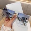 Dámské bezobroučkové velké čtvercové sluneční brýle s kovovými stranicemi s písmeny - Stylový a oblíbený zrcadlový design