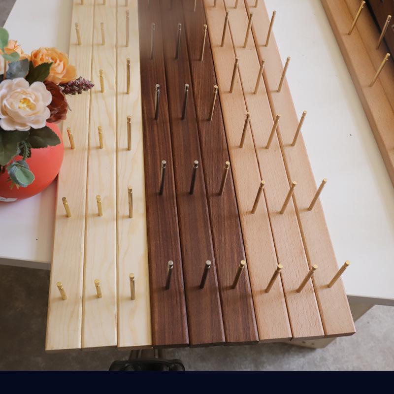 Nástěnný stojan na šperky z masivního dřeva - Design s rozestupy pro hřebíky a závěsnou tyčí