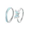 Snové modré motýlí svítící smaltované snubní prsteny pro pár - Dámské luxusní otevřené ladící dárkové prsteny