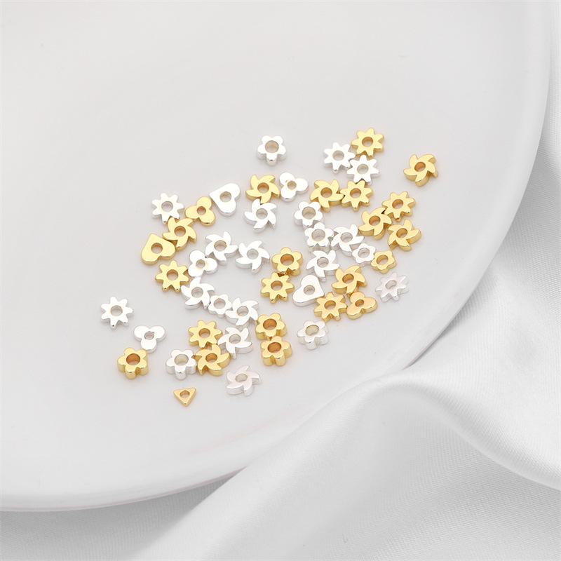 Copper Retention 14K Gold-Filled Plum Blossom Heart Spacers, 925 Silver DIY Ancient Style Jewelry Accessories for Bracelets, Necklaces, Earrings