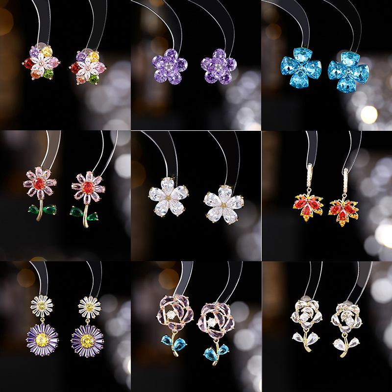 925 Silver Needle Flower Crystal Earrings, Korean Style High-End Zircon Studs, Sweet Dopamine Design for Women