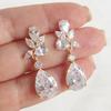 Huaya Sweet Pear-Shaped Teardrop Zircon Bridal Earrings for Weddings and Parties.