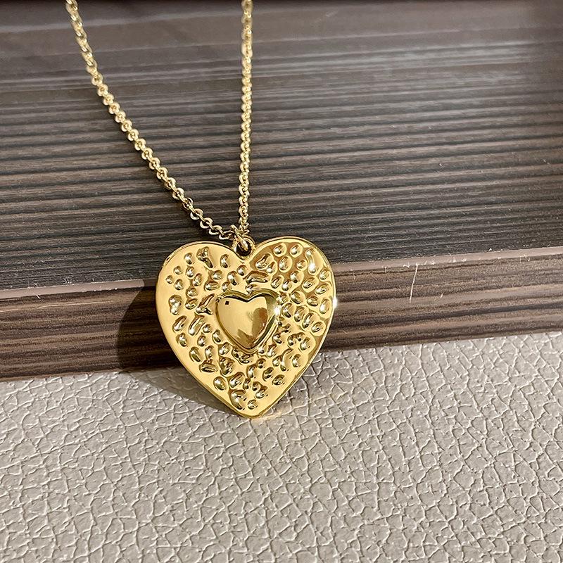Gold Heart Necklace - Korean Fever Style, Light Luxury Clavicle Chain with Layered Peach Heart Pendant