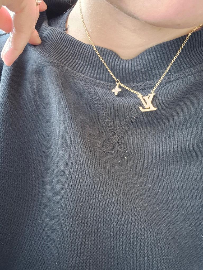 LV Lehký Luxusní Smaltovaný Náhrdelník s Růžovým, Černým a Bílým Písmenem V a Květinovým Vzorem - Trendy Dárek pro Ženy.