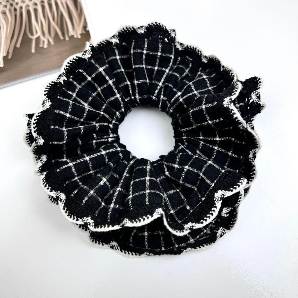 Women's Retro Black Floral Lace and Polka Dot Scrunchie Hair Accessories