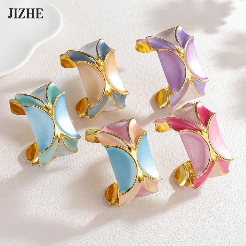 Přeshraniční nerezový náramek s barevným blokováním dopaminu - Niche móda, lehký luxus, geometrické šperky s kapkovou olejovou technikou.