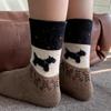 Dámské podzimní a zimní stylové plusové silné sametové teplé roztomilé psí vlněné podkolenky