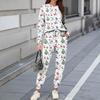 Dámské soupravy 2dílné tričko s kulatým výstřihem a dlouhým rukávem, potištěné tepláky s kapsami